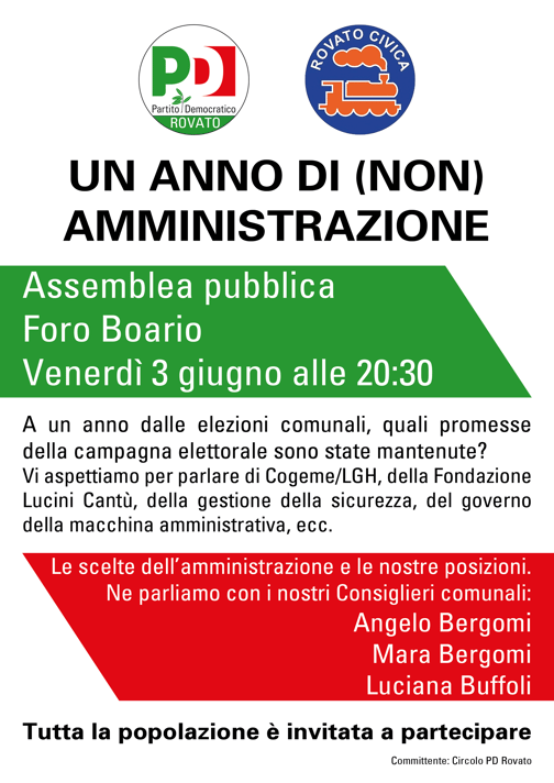 Le promesse vanno mantenute. Ho deciso quindi di convocare questa assemblea pubblica per rendere conto della nostra attività di questo anno in consiglio comunale e per fare con la cittadinanza il punto della situazione sui punti amministrativi principali: