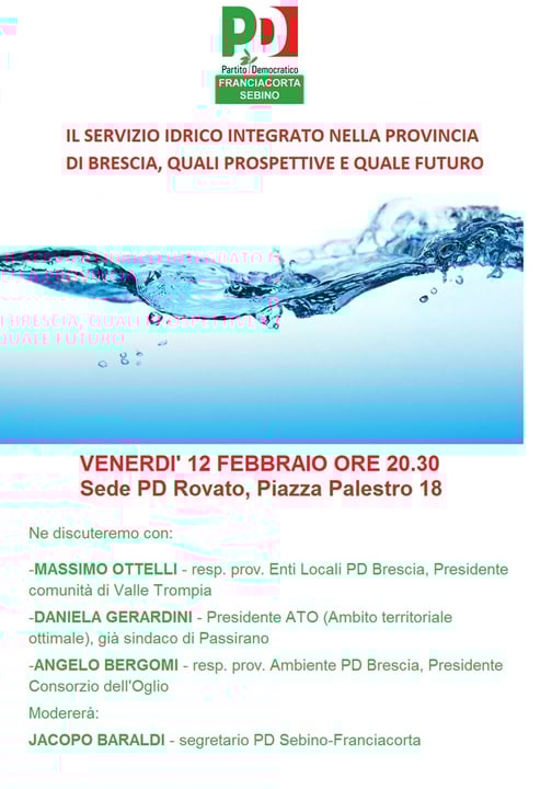Dopo il disastro compiuto dalla maggioranza leghista rovatese (il nostro Comune in minoranza in Cogeme per la prima volta in 43 anni di vita della società) cerchiamo di dare qualche certezza in più alla cittadinanza su un tema connesso: il Servizio Idrico Integrato. Siamo in un periodo di grandi evoluzioni normative e di decisioni importanti che riguardano le società che si occupano di distribuzione dell'acqua, fognature e depurazione. Tra Rovato e Cazzago S.M. risiede la maggior parte dei...