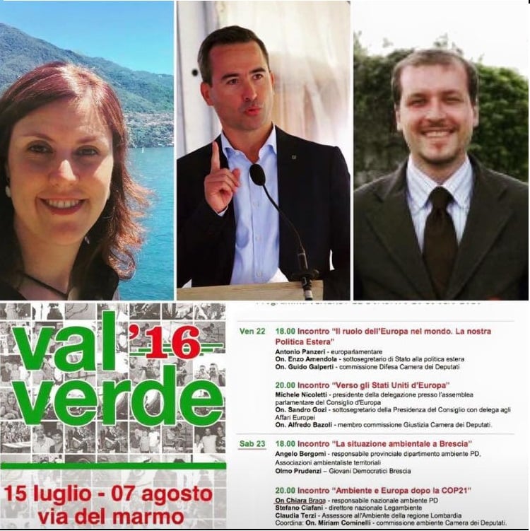 Ho avuto il compito di moderare un acceso dibattito sui temi ambientali nell'ambito della seconda serata della festa provinciale de l'Unità. Dopo i saluti di Michele Zanardi, il confronto tra l'assessore comunale in Loggia Miriam Cominelli, l'onorevole Chiara Braga membro della segreteria nazionale del PD con delega all'ambiente, il vicepresidente della Provincia di Brescia Guido Galperti si è arricchito del dialogo con un ospite esterno: l'assessore regionale Raffaele Cattaneo.