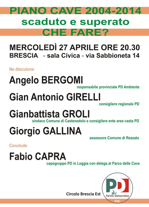 Ottimi spunti di analisi e serie azioni da intraprendere per il futuro sul tema caldissimo del prossimo Piano Cave Provinciale, settore sabbia e ghiaia, della Provincia di Brescia. In una sala civica gremita mi sono confrontato con relatori assolutamente autorevoli come Fabio Capra, Gianni Girelli, Giorgio Gallina e Gianbattista Groli, introdotti dall'ottimo coordinatore del Circolo PD Brescia Est Luciano Pedrini. Voglio ringraziare sentitamente questo circolo perchè ha creato l'occasione per...
