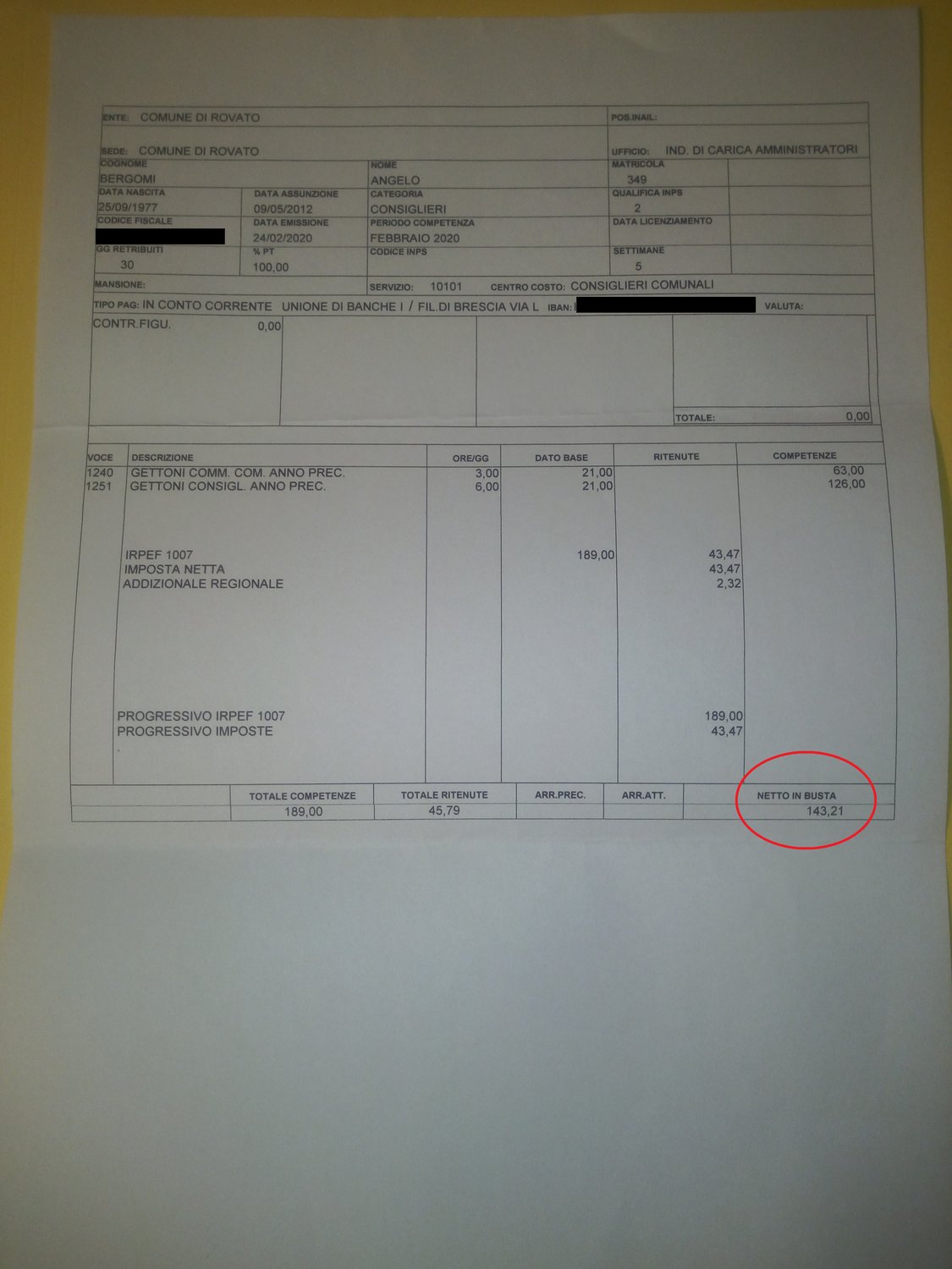 Pubblico per il tredicesimo anno consecutivo la "busta paga" da consigliere comunale. Assolvo questo impegno di trasparenza con l'obiettivo anche di far capire che chi si impegna a livello pubblico, spesso e volentieri, lo fa per pura passione e non per le relative indennità.