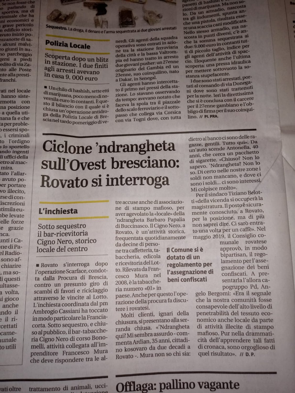 Il Giornale di Brescia, nell'edizione del 08/11/2020, parlando del sequestro di un'attività economica a Rovato, ricorda il risultato che due anni fa portammo a casa in consiglio comunale: l'approvazione del regolamento per l'assegnazione di beni confiscati. Qui trovate l'articolo.